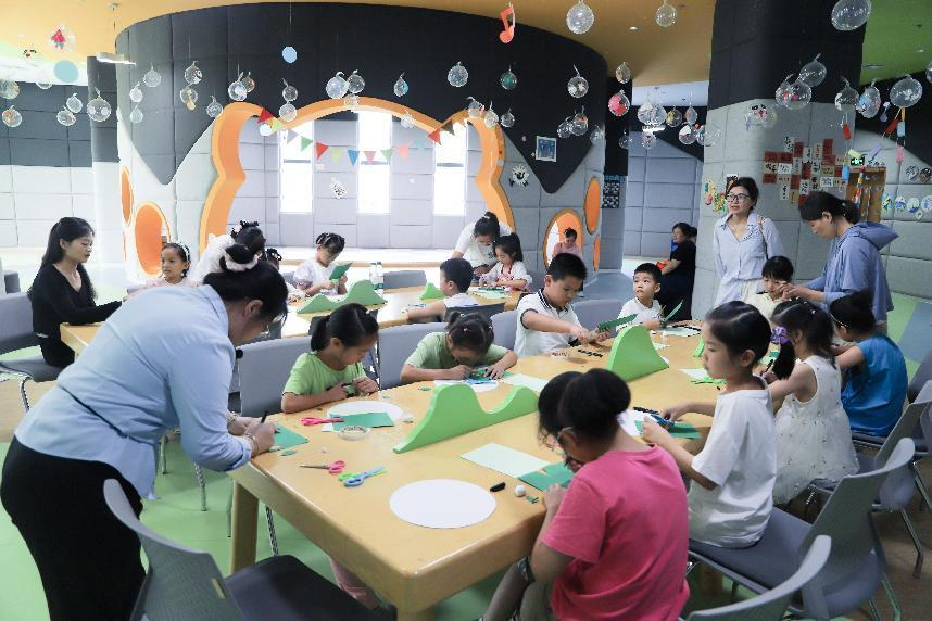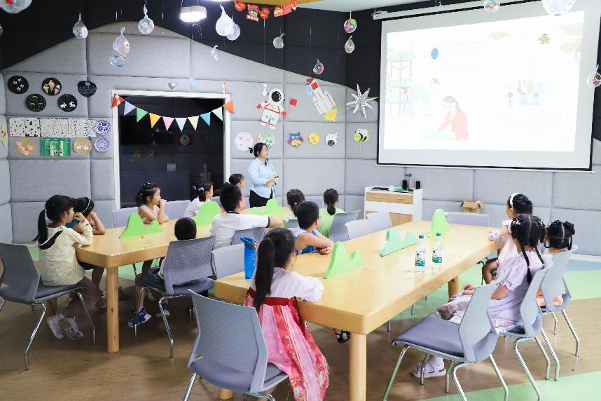 活动中,老师为孩子们讲解了《嫘祖的传说》的故事,并带领亲子家庭利用黏土和彩纸等材料,制作出可爱的蚕宝宝。